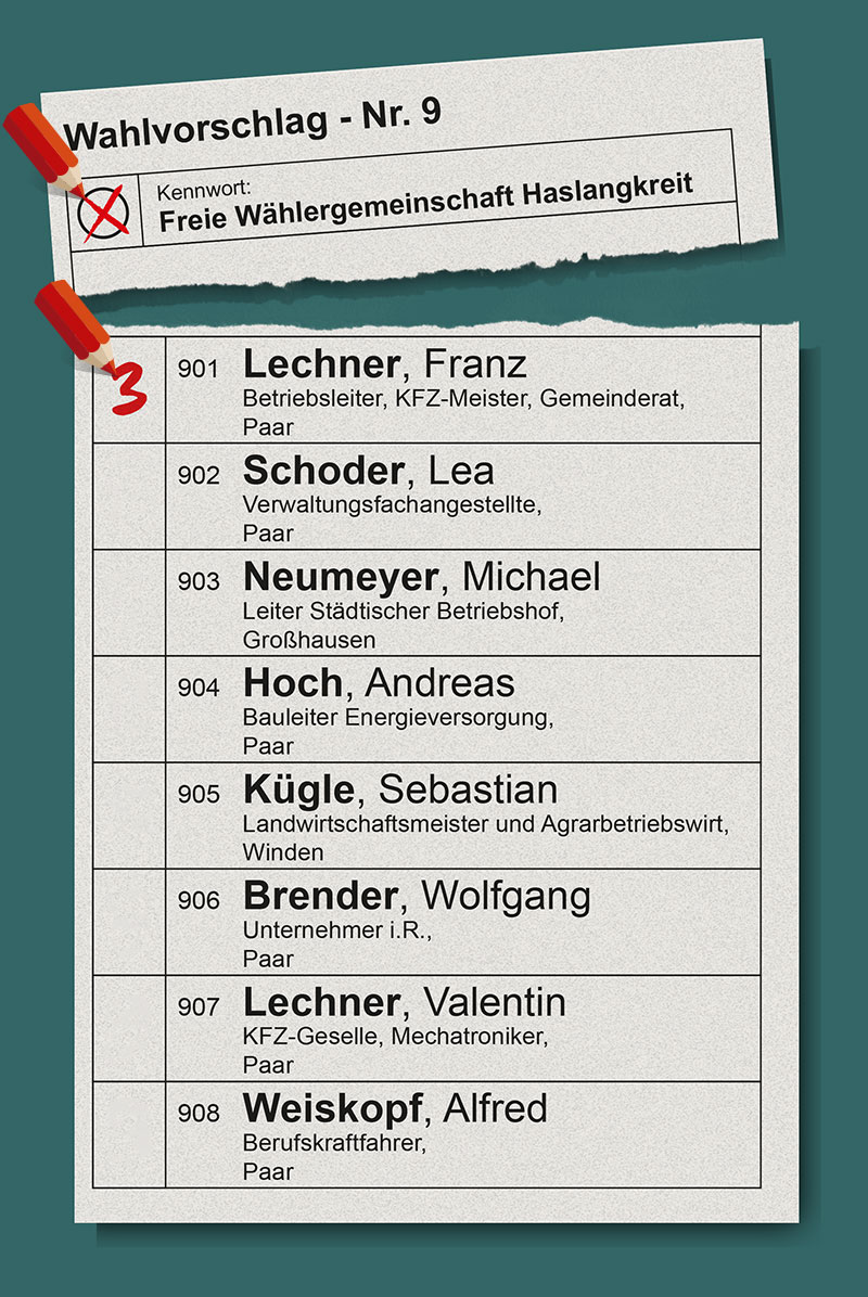 Ihr Kreuz ganz oben für die Freie Wählergemeinschaft Haslangkreit ist besonders wichtig!